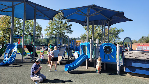 Legion Park offers a wonderful experience with its clean environment and modern playground equipment that kids find exciting and unique. It features multiple play areas catering to different age groups, connected by a fun walking path for adventurous exploration. Families will appreciate the abundant benches and picnic tables for relaxing breaks, alongside excellent ball fields and a charming caboose structure.