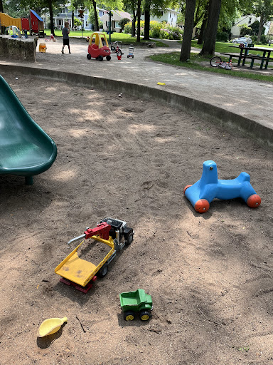 Mattocks Park is celebrated as a charming neighborhood gem, renowned for its extensive shade provided by large trees, creating a comfortable and cool play environment. The playground features a thoughtful mix of equipment, including a toddler jungle gym and a larger structure with climbers and slides for older children, with separate sand and rubber pad surfaces. Families particularly appreciate the communal collection of donated toys, adding a unique and inviting charm to this quiet, well-maintained green space.