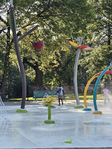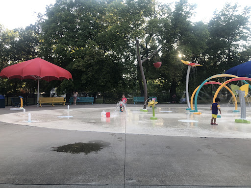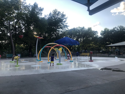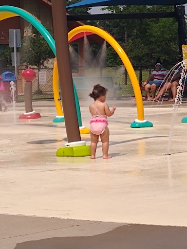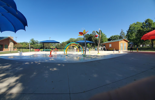 Excellent splash padLarge parkMultiple playgroundsShaded areasAccessible amenities