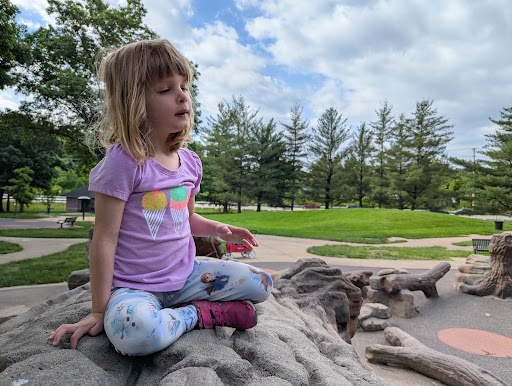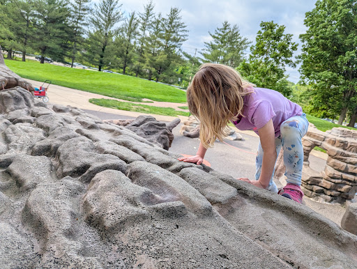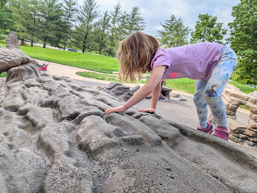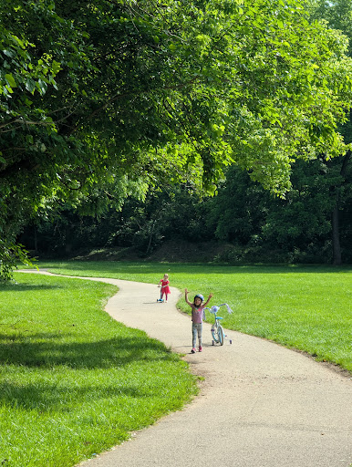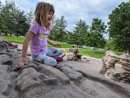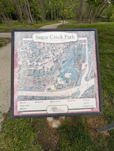 Sugar Creek Park is a lovely, well-kept park offering a variety of amenities for families. It features a nice playground with swings and creative climbing equipment, complemented by benches for parents. Families can enjoy the splash pad, and there are expansive open fields for soccer and baseball. The park also boasts short, stroller-friendly walking trails that wind through wooded areas, providing a pleasant outdoor experience. Clean restrooms and ample parking further enhance the visitor experience.