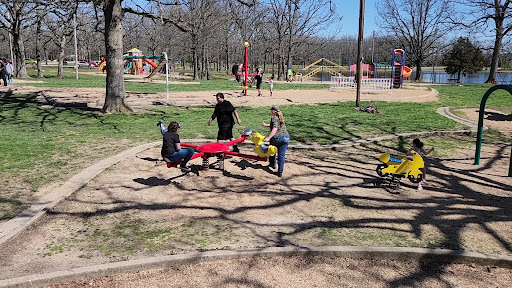 This extensive park offers a wide array of playground equipment, blending both traditional and modern designs, ensuring varied fun for children. Families can enjoy the scenic pond with bridges and walking paths, perfect for leisurely strolls or fishing. Numerous pavilions provide excellent spots for picnics and gatherings, while accessible features ensure that children of all abilities can partake in the play.