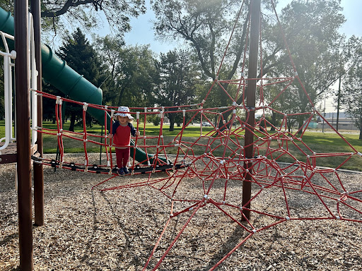 North Park features a brand-new, amazing playground with separate play sets catering to both younger and older children. Families will enjoy the fantastic splash pad with water guns and shooting fountains, perfect for hot days. The park also offers diverse amenities like an adult exercise circuit, artistic elements, and extensive cement pathways ideal for walking and biking. Its large open spaces are perfect for various events and general enjoyment.