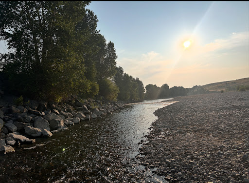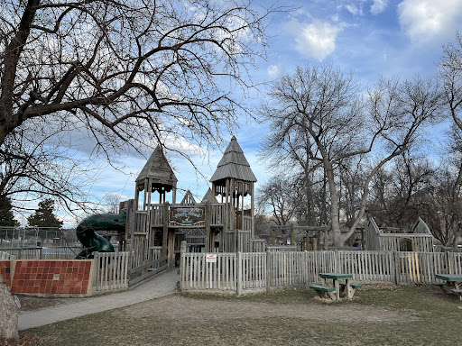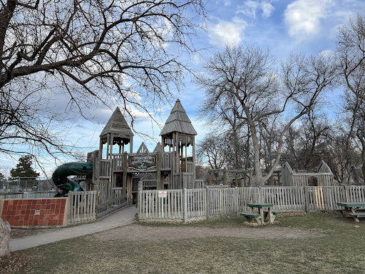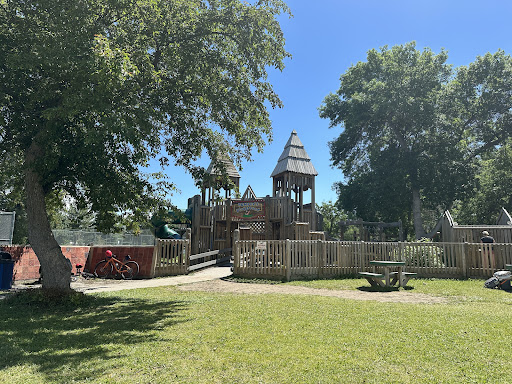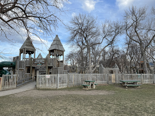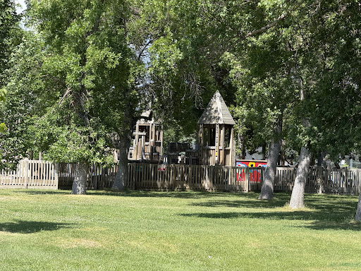 Sacajawea Park and Tennis Courts offers a wonderful and spacious playground designed to captivate children of various ages, featuring slides, swings, monkey bars, a fun spinning element, and a large sand play area. A highlight is the impressive wooden castle structure that provides exciting challenges and imaginative play. Families can enjoy the beautiful surroundings with views of the Yellowstone River and a cute pond, along with ample open grassy fields for running and playing. The park also provides convenient amenities like shaded benches, BBQ grills, and public restrooms, making it a comfortable and enjoyable destination for a family outing.