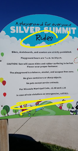 Silver Summit Playground is a clean and well-maintained park featuring adaptive and accessible play equipment, making it suitable for children of all ages and abilities. Families can enjoy shaded picnic tables under numerous trees, and paved paths are available for scooters or leisurely walks along the Clark Fork River. The playground is conveniently located near additional amenities like a skate park, baseball fields, and a pond perfect for fishing, offering a wide range of activities for a fun family outing.