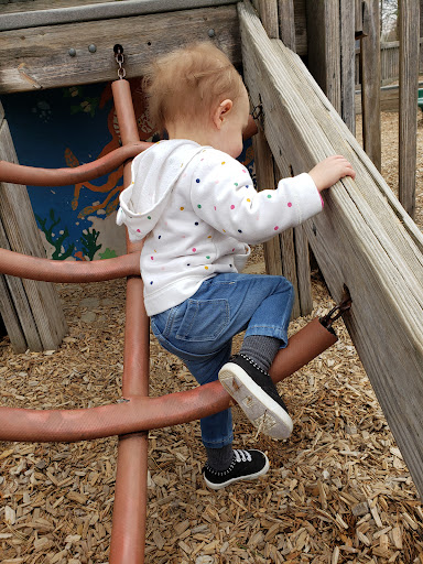 Planet Playground is a great big playground with plenty to do and explore, praised for its recent remodel and ample space for activities. It is notable for being completely fenced in with a single entry and exit, providing a relaxing environment for parents. The climbing areas are often enclosed, making it great for smaller children, while the overall size caters to various ages. The park also features plenty of seating, along with adjacent tennis, pickleball, basketball courts, and baseball fields, and even offers food and ice cream for purchase.
