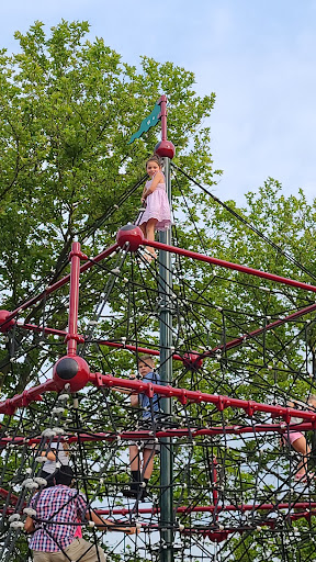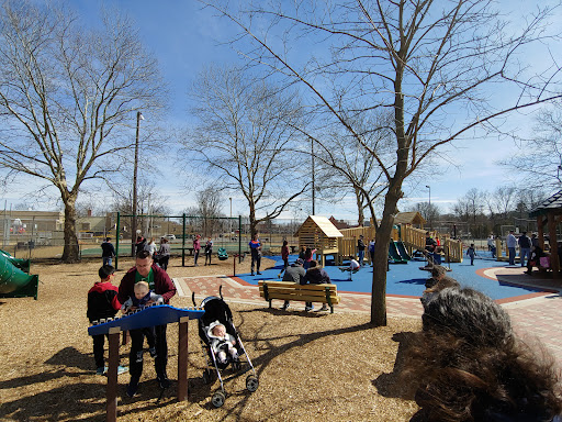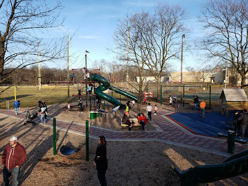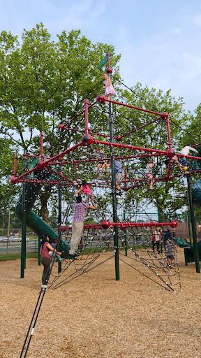 The Denville Township Playground is a fantastic, recently renovated destination offering a wide array of activities perfect for children from toddlers through teenagers. Its standout features include a thrilling zipline, multiple climbing structures like a rope pyramid and cable climber, and a variety of swings and slides. The playground is fully enclosed, providing a secure environment, and is conveniently located near active sports courts including tennis, basketball, and baseball fields, adding to its appeal as a comprehensive community park.