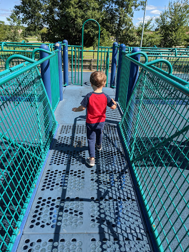 Imagination Station Playground is a fantastic and highly-rated park designed to be accessible for children of all abilities, featuring multiple distinct play zones tailored for infants, toddlers, and school-aged kids. The park boasts an extensive array of equipment including numerous slides, climbing structures, and a wide selection of swings, including adaptive options. Families will appreciate the convenient picnic pavilion, shaded seating, and a scenic walking path around a nearby pond, all complemented by ample parking.