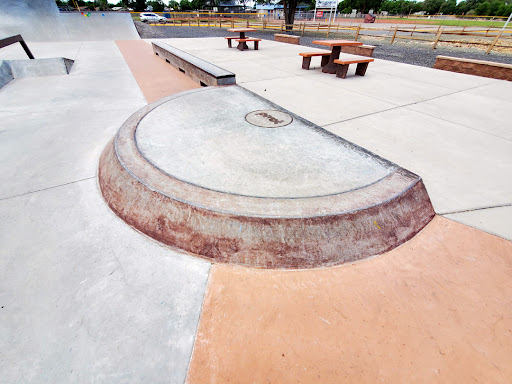 Rotary Park is a versatile and well-maintained outdoor space known for its popular skatepark and pump track, which offer great fun for older kids and enthusiasts. Younger visitors will delight in the unique train car they can climb, alongside traditional playground features like slides and swings. The park boasts expansive open grass fields perfect for running and games, ample shade from large trees, and convenient picnic tables and benches, providing a pleasant environment for families and groups.