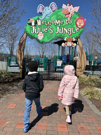 Julie’s Jungle is an outstanding and truly inclusive playground, designed with accessibility for all children, including those with disabilities, featuring handicap swings and a wheelchair-accessible seesaw. It offers a variety of engaging structures, including a jungle gym with ramps, all set within a fully fenced, safe environment with soft-padded rubberized flooring. Beyond the play structures, families can enjoy a beautiful sensory garden with artistic elements, a serene stream with a bridge, shaded seating, picnic tables, and ample parking. This unique and well-maintained park is cherished for providing a magical and enriching outdoor experience for all ages.