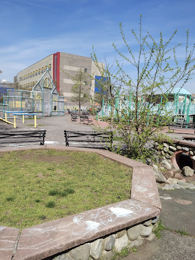 Jennifer’s Playground offers an appealing and spacious environment with a variety of engaging features for children. It boasts fun slides and swings, along with popular sprinklers that provide refreshing water play during warmer months. The playground includes innovative sensory props for musical and interactive play, alongside a large grass area perfect for running around and a basketball court for active fun. Families can also utilize a gazebo with benches and tables for shaded seating.