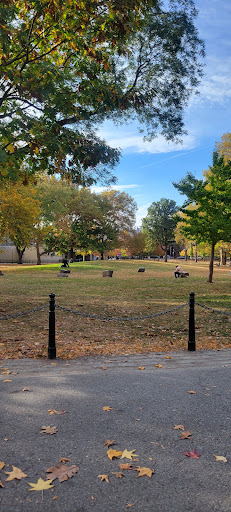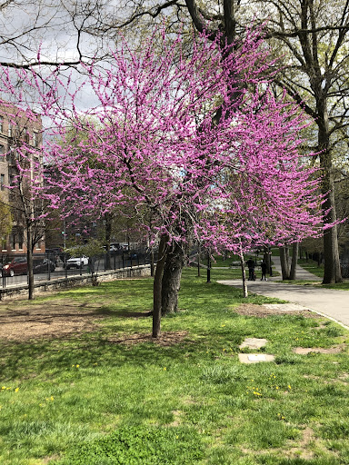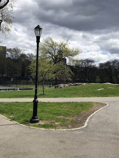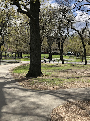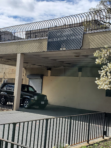 St. James Park offers a good amount of open space for children to play and for families to enjoy picnics. It features various sports facilities including basketball courts, soccer fields, and tennis courts, alongside playful water spouts for kids. The park is well-lit in the evenings and provides numerous benches for relaxation. Its surrounding trees offer a pleasant natural feel within an urban setting, making it a valuable neighborhood green space.