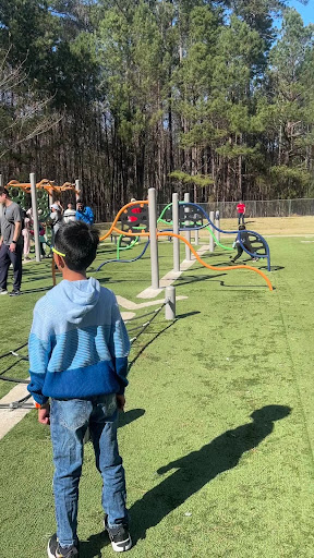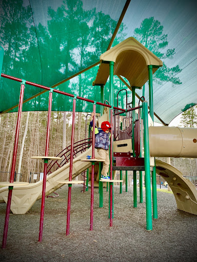 Apex Community Park Playground is a versatile destination, featuring two distinct play areas, including an exciting ‘American Ninja Warrior’-style course that provides engaging challenges for older children, alongside a traditional playground for younger kids. Families enjoy the ample shade over the play areas, making it a comfortable spot even on hot days, and appreciate the convenient restrooms. The park also boasts a beautiful 2-mile paved trail around a serene lake, perfect for walks and connecting with nature.