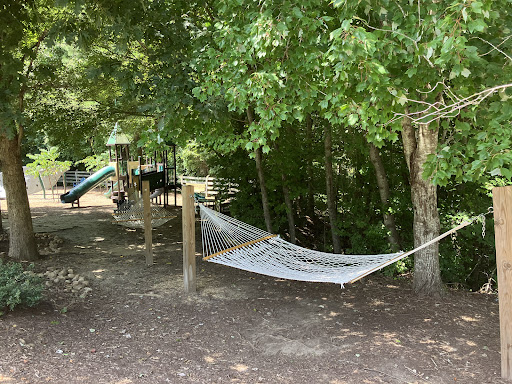 Fan Branch Pocket Park is a charming neighborhood spot featuring swings and a play fort with slides, all nestled in a comfortable shaded area. A unique highlight is the presence of community hammocks, adding a relaxing touch, alongside easy access to a lovely stream for kids to explore. With a wood chip surface, picnic tables, and benches, it’s an ideal and inviting playground for toddlers and children up to eight years old.