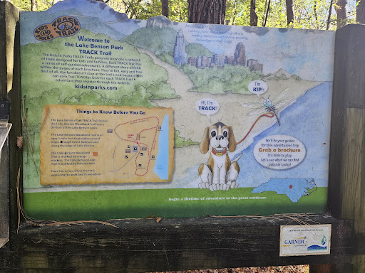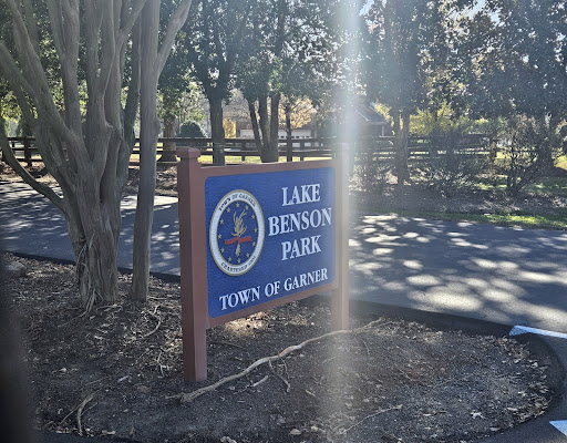 Lake Benson Park is a beautiful and expansive destination offering several distinct playgrounds and vast open grassy areas perfect for family outings and activities. Visitors can enjoy shaded picnic tables and covered shelters for gatherings, along with scenic walking trails that wind around the lake. The park also features a convenient drinking fountain and artistic elements at the entrance, providing a well-rounded and enjoyable experience for all ages.