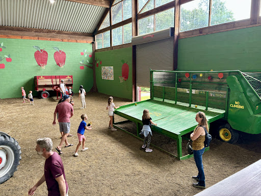 Jeter Mountain Farm is a highly recommended family destination offering a beautiful and meticulously maintained environment. It boasts a large indoor play area for children, ensuring entertainment regardless of weather. Families can enjoy delicious food from on-site food trucks, fresh apple cider donuts, and a variety of U-pick fruits. The farm provides a well-thought-out experience with friendly staff and clean facilities, making it an exceptional outing for all ages.