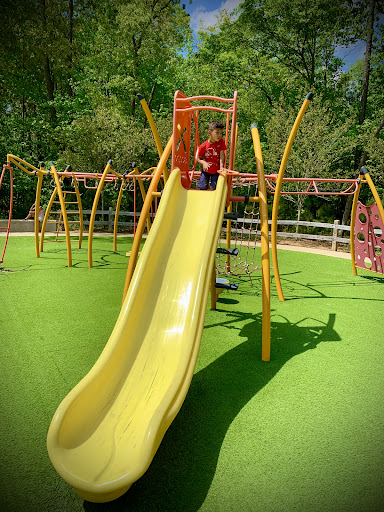 Jones Park is a highly-rated, well-maintained playground featuring distinct areas catering to toddlers, preschoolers, and older children, complete with slides, climbing structures, and monkey bars. Families appreciate the ample space for running around, the availability of shaded picnic tables and shelters, and the picturesque natural surroundings including ponds and walking paths. Its convenient location and clean facilities make it a favorite for family outings and after-school play.