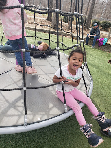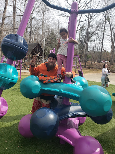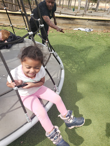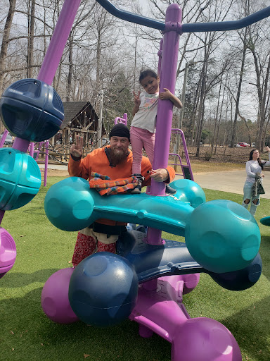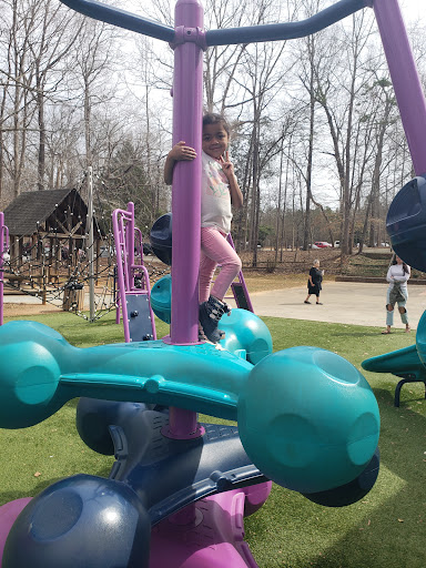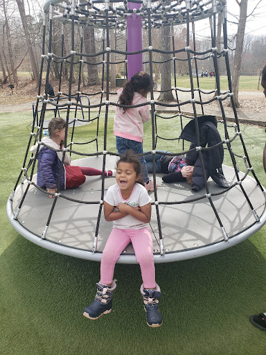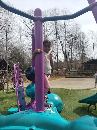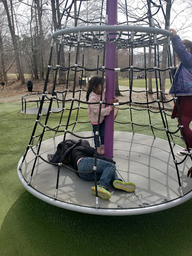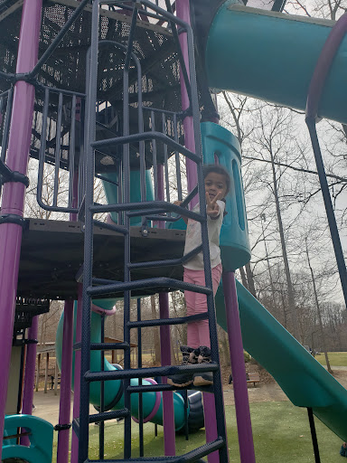 Finch Park offers a large and exciting playground featuring tall slides, swings, and unique climbing structures designed to appeal to a wide age range of children. The playground benefits from a soft, artificial turf surface that ensures safety and cleanliness. Beyond the play equipment, the park provides ample shade from trees, diverse sports fields for basketball, soccer, and baseball, along with scenic walking and biking trails around a lovely lake, making it a wonderful spot for active families to enjoy the outdoors.