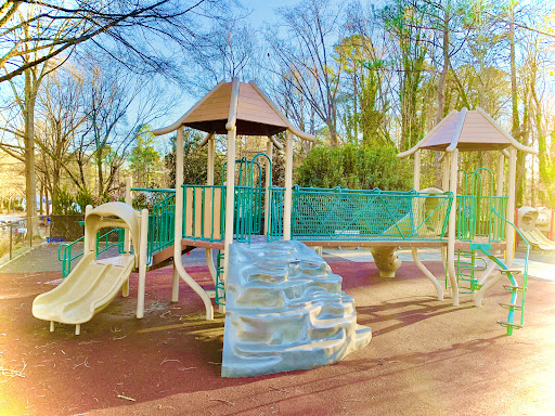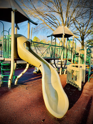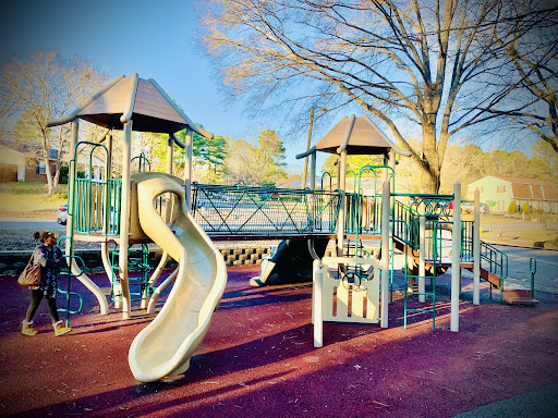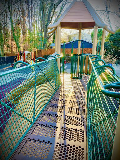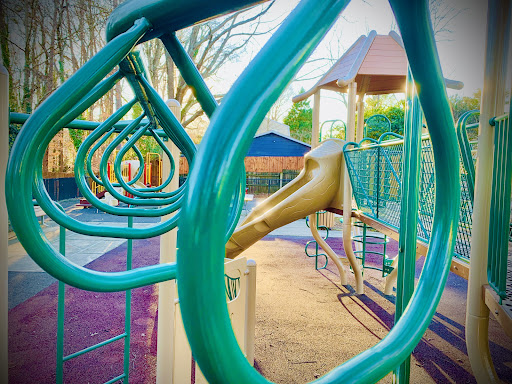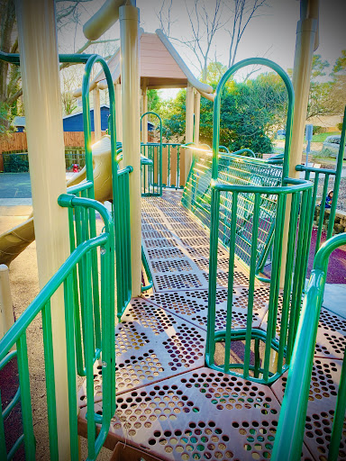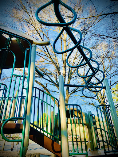 Longstreet Park is a well-maintained neighborhood playground that offers two distinct play areas catering to different age groups, from toddlers to school-aged children. It features creative climbing structures, including a mountain rock climbing area and engaging elements like excavators in a sandbox, providing varied play opportunities. The park boasts soft rubber padding and artificial turf under the equipment, ensuring a safe surface for active play, and is largely fenced for added security, allowing for good visibility for parents.