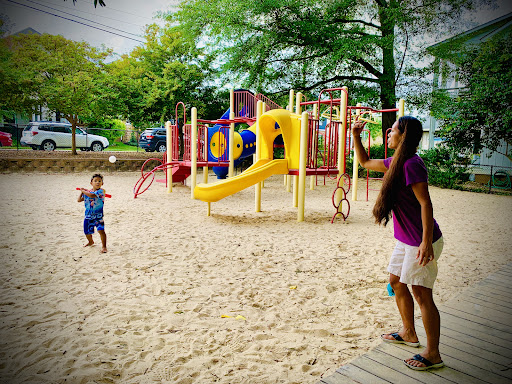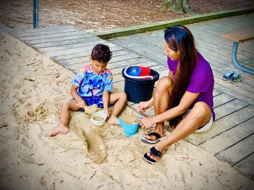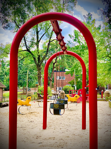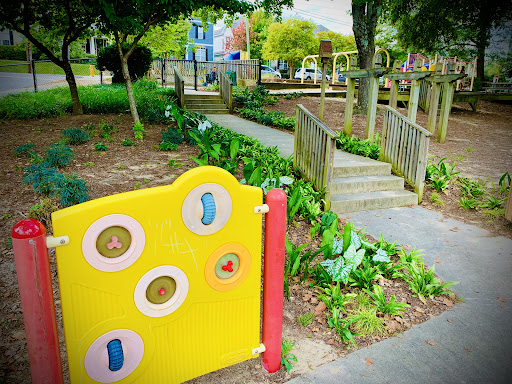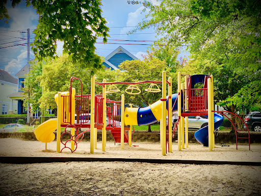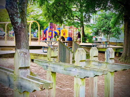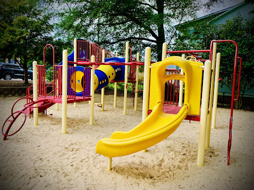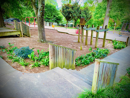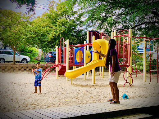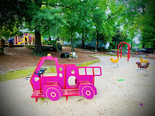 Mordecai Mini Park is a charming and unique neighborhood playground, fully fenced to provide a secure environment for children to play freely. It features a delightful sand surface throughout, complemented by stepping stones, tunnels, and creative elements like “Mario and Luigi” concrete structures and a “fire truck” play piece, making for an engaging and imaginative play experience. With designated areas for both younger and older children, and plenty of natural shade from trees and shaded seating, it’s an appealing spot for families seeking a pleasant and clean outdoor adventure.