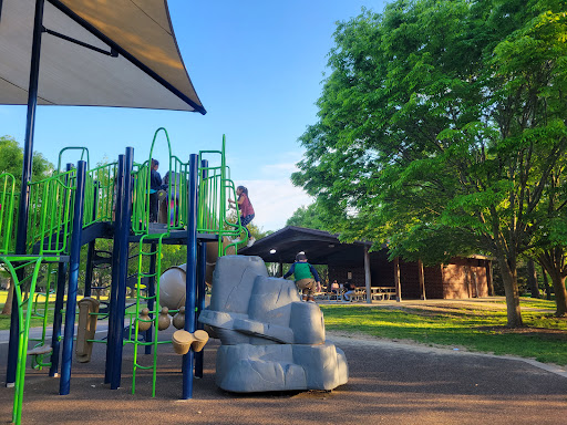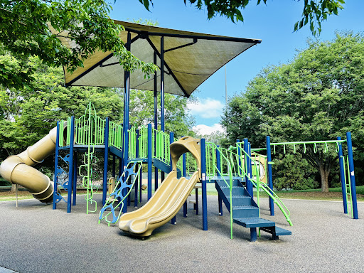 Toddler/preschool focusTraditional play equipmentIntegrated with larger park amenitiesPeaceful atmosphereConvenient restroomsOpen space for running