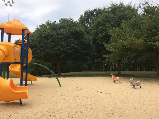 Spring Forest Road Park offers a delightful playground specifically designed for children aged 2-5, featuring multiple slides, swings (including a parent-child swing), and climbing structures with monkey bars. The playground is conveniently located next to a sheltered picnic area and clean restrooms, making it easy for families to spend time. Beyond the play area, the park boasts a large open grass field perfect for running and sports, along with a paved walking trail, all within a tranquil setting.