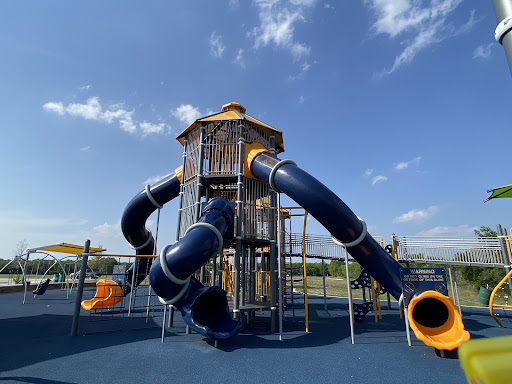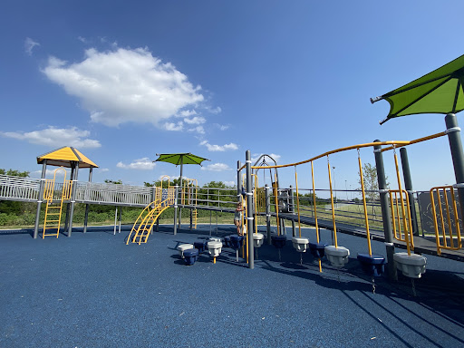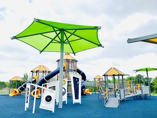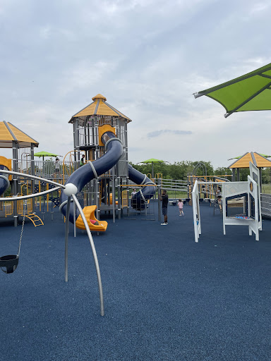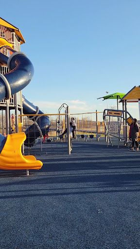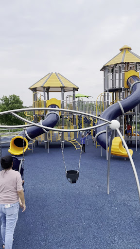 North Park features a fantastic and expansive play area, highlighted by an impressive three-story climbing structure. The park boasts a soft rubber matting ground cover, making it comfortable and safer for children. Designed with elements for various abilities, it offers an inclusive play experience. Parents appreciate the ample parking and the general cleanliness of the play structures.