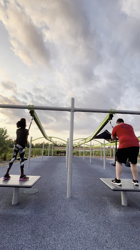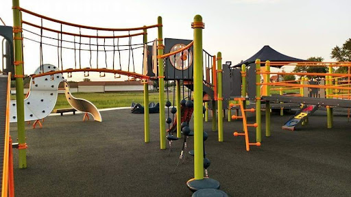 The Walnut Grove is a highly acclaimed playground offering a fantastic array of colorful and engaging equipment, ideal for children of all ages and abilities. It boasts innovative features like ziplines, extensive climbing structures, a musical play area, and swings, all set on soft, cushioned flooring for safety. Families appreciate the ample shaded seating, picnic tables, and the convenient walking trail leading to a pond, making it a wonderful destination for a fun-filled day outdoors.