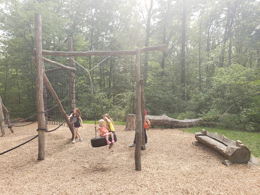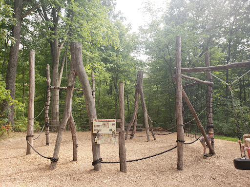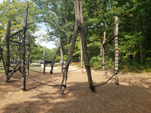 The Natural Playground at Blendon Woods Park is a truly unique destination, crafted from natural materials like fallen trees, offering a refreshing change from traditional plastic structures. Children delight in its engaging features such as a teeter-totter, climbing ropes, a fun zipline, and a charming wooden train. Families appreciate the beautiful natural setting with creek access, picnic tables, BBQ areas, and shaded seating, making it an excellent spot for outdoor adventures and family outings.