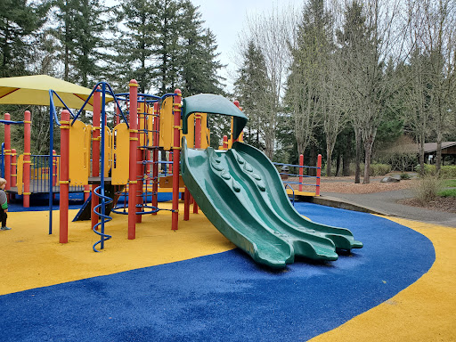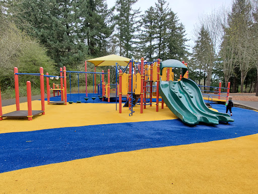 Jenkins Estate Playground is a highly-rated, serene park offering a delightful escape into nature with its beautiful scenery and extensive forest trails. The playground is particularly well-suited for toddlers, featuring soft astroturf surfacing for safety and a variety of engaging equipment like slides, swings, and climbing structures. Families will appreciate the ample open grassy fields for play, convenient picnic tables, clean restrooms, and abundant parking. Its quiet atmosphere makes it a perfect spot for a relaxed day out, complemented by artistic elements like a painted rock garden.