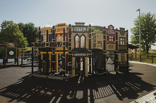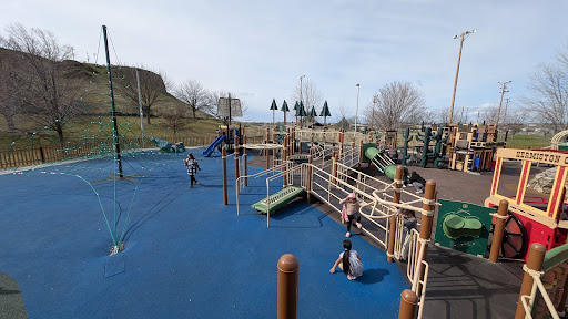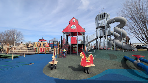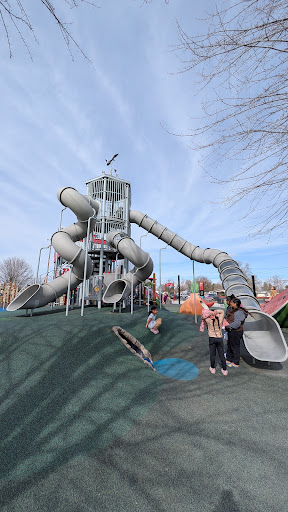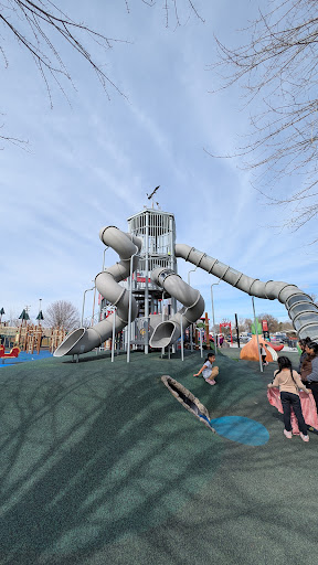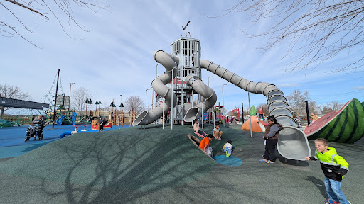 Funland Playground is celebrated as an exceptional park, offering an impressive array of play options that cater to children of all ages, from toddlers to teens. Visitors appreciate the diverse equipment, including slides, tunnels, climbing structures, and spinning features, all set on soft flooring for safety. The highly popular splash pad is a fantastic feature, providing a fun way to cool off. Additionally, the park boasts ample open grassy space for various activities, shade trees, and even a snack vendor, making it a truly engaging and enjoyable destination for families.