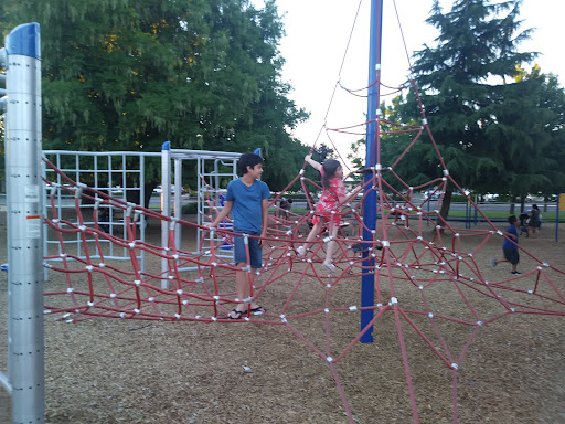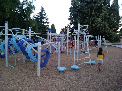 Hawthorne Park Playground is a large and engaging park offering multiple play areas and a refreshing splash pad, making it an excellent spot for kids to get active and cool down. It features diverse equipment, including extensive climbing structures and high swings, catering to a broad age range. The park also provides inclusive play equipment, an outdoor gym, restrooms, shaded seating, and various sports courts, ensuring a wide array of activities for the entire family.