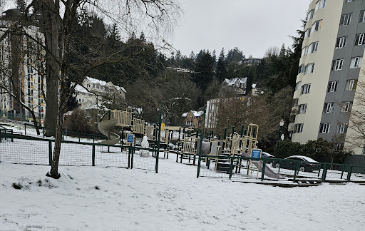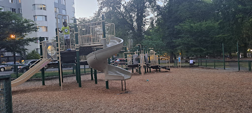 South Park Blocks Playground is a highly regarded spot for families, particularly noted for its exceptional cleanliness. The play area is nicely enclosed with a low fence, offering a secure environment for children to play. Its proximity to a skate park provides an entertaining backdrop, while the surrounding university life contributes to a pleasant and lively atmosphere.
