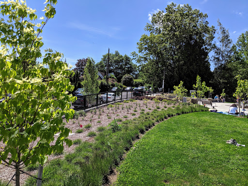 Spring Garden Playground is a modern and inventive park featuring unique climbing structures and slides, offering engaging play for children. A highlight during warmer months is the delightful water feature and splash pad, perfect for cooling off. The park is designed with accessibility in mind, offering paved paths and a public restroom. Families can enjoy picnic tables and a covered area for shaded seating, making it a pleasant destination for a day out.