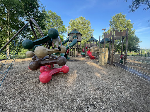 Kids Castle is a vast and popular playground offering a wide array of activities designed to entertain children of all ages, from toddlers to teenagers. Families will appreciate the variety of slides, swings, and unique climbing structures, as well as a dedicated toddler area. The entire play space is securely fenced with a single entrance, enhancing safety and visibility for parents. Visitors can enjoy convenient amenities such as nearby restrooms, numerous picnic tables, and adjacent walking and biking trails for extended family outings.