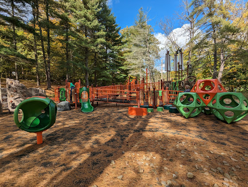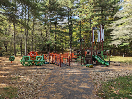Mingo Creek Pirate Playground is a highly-rated park featuring a creative pirate ship-themed climbing structure with various slides, ramps, and climbing nets, ensuring a fun and engaging experience for children. The playground is surrounded by a beautiful natural setting with tall pine trees, walking and biking trails, and nearby fishing spots, making it ideal for a full family day out. Families particularly appreciate the soft rubber fall surface, clean restrooms, and ample picnic tables, all contributing to a well-maintained and enjoyable environment for kids of all ages, especially toddlers.