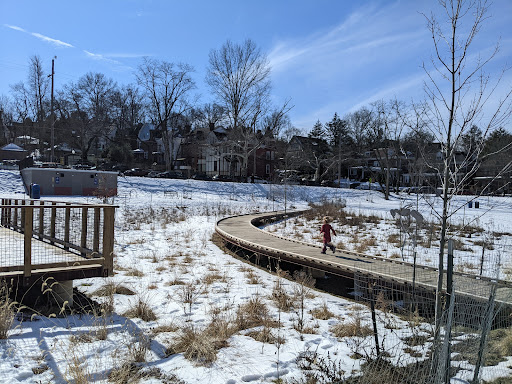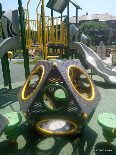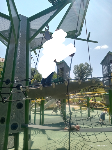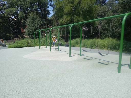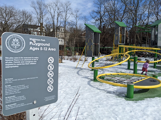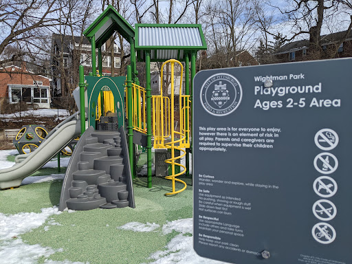 Wightman Playground at Wightman Park stands out as an exceptional and modern play space, offering unique equipment like climbing walls, rope structures, and a “toppsy turvy” merry-go-round. It features slides of various sizes and dedicated areas specifically designed for toddler-aged children, ensuring fun for different age groups. The playground also boasts inclusive play equipment and accessible ramps, alongside artistic elements and sculptures that contribute to its distinctive charm. Visitors will appreciate the soft-fall surfaces, numerous swings, picnic tables, and the overall clean and engaging environment.