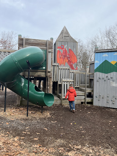 This playground offers an exciting and engaging experience for children with its dynamic design featuring numerous slides and different elevations. It provides ample entertainment for kids, especially with its past castle theme, which is currently undergoing reconstruction for a brand new setup. Families can also enjoy fantastic hiking trails of varying difficulty directly accessible from the park, leading to beautiful views.