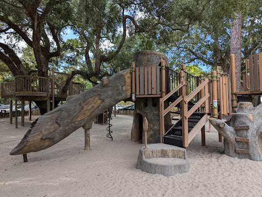 Gregg Russell Harbour Town Playground is a truly unique and beloved spot, distinguished by its enchanting tree-themed play structures and a genuine treehouse. Benefiting from ample natural shade provided by majestic live oak trees, it offers a cool and comfortable environment for children of all ages. Families appreciate its clean sand surfacing, picnic tables, and the convenient location right next to the vibrant harbor, making it an ideal destination for fun and relaxation.