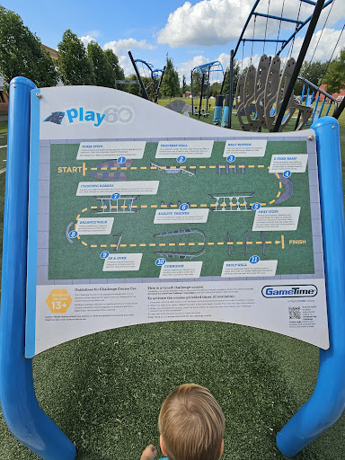 The Panthers NFL Play60 course is a unique and highly engaging outdoor space, perfect for active kids and adults who enjoy a challenge. This NFL-themed park features an exciting ninja-warrior style obstacle course and a 40-yard dash for friendly competition, offering plenty of open grassy space for running around. Its prime location right off the rail trail and next to an awesome bike park provides additional opportunities for outdoor activities, and visitors appreciate the clean porta-potty restrooms, shaded picnic shelter, and nearby food vendors for convenience.