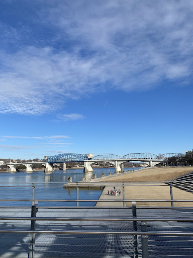 Riverfront Playground offers a picturesque setting with beautiful views of the Tennessee River, making it an appealing spot for families to enjoy. The park features engaging play structures, including slides and accessible ramps, catering to a range of ages. With ample shade and plenty of sitting areas, parents can comfortably watch their children, while convenient parking and nearby restaurants add to its appeal.