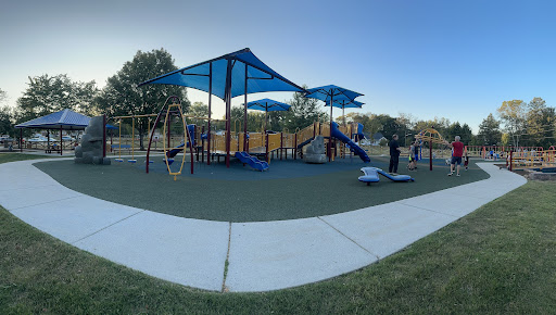 Stuart Park is a fantastic, newly improved park celebrated for its inclusive design, offering ramps and accessible features that cater to children of all abilities. It boasts a wide variety of play equipment, including swings, a zipline, climbing structures, and merry-go-rounds, ensuring fun for toddlers to teenagers. The park also features a soft fall surface with both mulch and artificial turf, plenty of seating, picnic tables, and a nice open grass field, complemented by charming animal statues throughout.