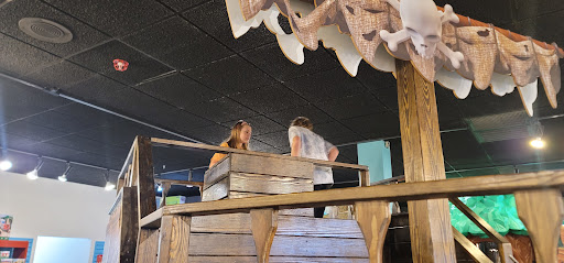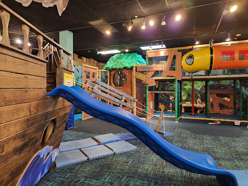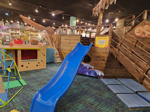 Smart Toys and Books offers a delightful indoor playground experience, making it an excellent option for children, especially on rainy or cold days. The play area features a fun pirate ship structure with slides and various imaginative pretend play sets like kitchens and pizza places, fostering creative play. It’s particularly well-suited for toddlers and preschoolers, with a train table adding to the attractions, providing a clean and engaging environment where kids can easily spend hours exploring.
