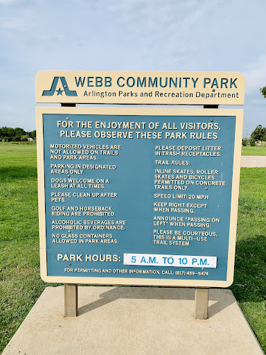 Webb Community Park is a spacious and well-maintained gem offering a wide array of recreational opportunities for the community. It features a beautiful and large playground with multiple play areas for children, alongside expansive open fields perfect for various sports. The park is equipped with clean restrooms, ample parking, and covered pavilions for gatherings, making it an ideal spot for families. Additionally, visitors can enjoy a skate park, basketball and soccer fields, and peaceful walking paths leading to a nearby lake for fishing and relaxation.