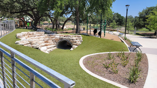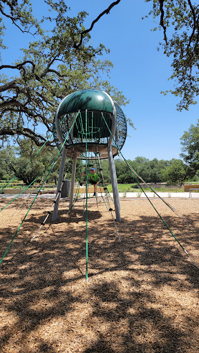 The Playground at The Grove is lauded for its beautiful and natural design, featuring unique play elements such as slides, a fort, a tunnel, and engaging balance beams and rope walks. Its aesthetic appeal and challenging layout provide a fun experience for older children and teens who are coordinated and enjoy adventurous play. The park also benefits from nice shade and a fence along the street, offering a visually pleasant environment.