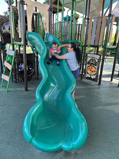 This playground is highly praised for its exceptional shade, featuring a covered design that keeps the equipment cool and enjoyable even during hot weather. It offers a clean and well-maintained play environment suitable for both younger and older children, making it a versatile destination for families. Visitors also appreciate the convenience of clean, air-conditioned restrooms and readily available water fountains, ensuring a comfortable and fun experience.