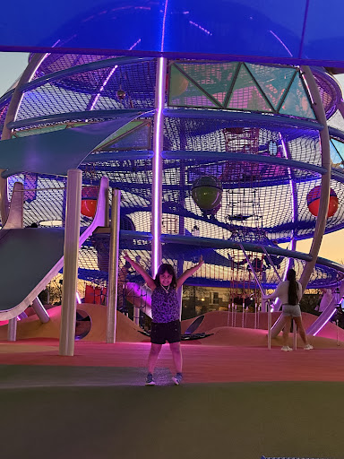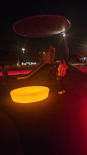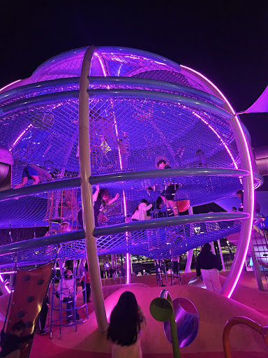Joya Playground at Oran Good Park is an exceptional destination known for its vibrant and imaginative design, offering engaging activities for children of all ages. The park features an exciting zip line, twisting slides, and climbing frames, alongside two distinct play areas catering to different age groups. Visitors particularly enjoy the comfortable, shaded seating for parents and the clean restrooms. The park also comes alive at night with appealing lighting, creating a magical atmosphere for evening play, and benefits from amenities like covered picnic tables and occasional food vendors.