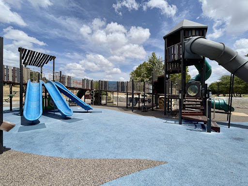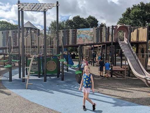 Creative Playscape is a highly-rated park celebrated for its extensive variety of play structures, catering to children across a wide age range from toddlers to pre-teens with inclusive equipment like harness swings and wheelchair accessibility. Families appreciate the park’s thoughtful design, including secure fencing with limited exits for enhanced safety, and plenty of opportunities for climbing and sliding. Visitors also benefit from comfortable shaded seating areas for parents and convenient restrooms, with a splash pad and skatepark located nearby for additional fun.