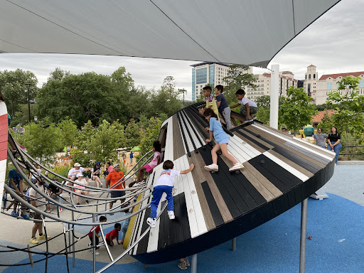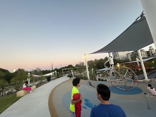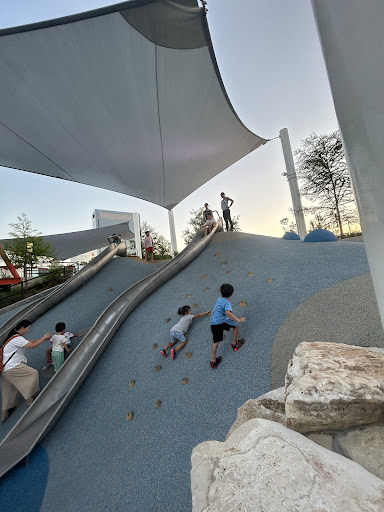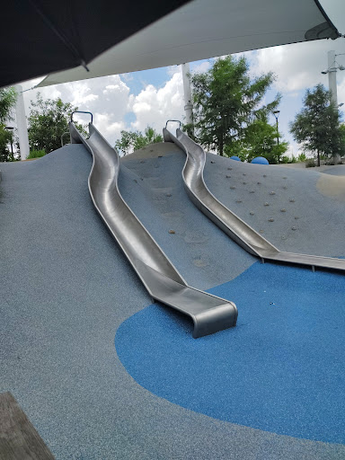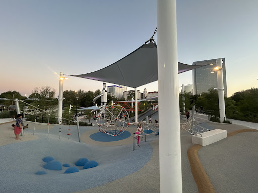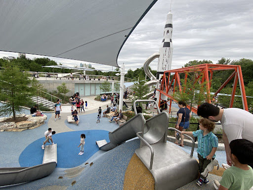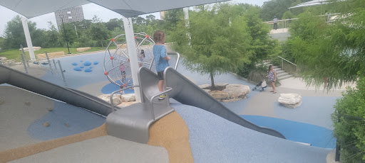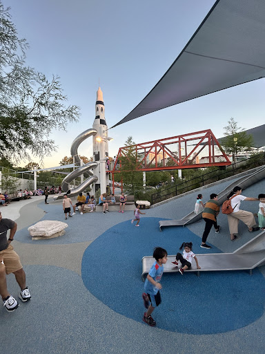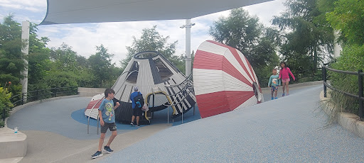 Space Adventure is an imaginatively designed park featuring a cohesive space theme and a variety of play elements, including slides and a small rock climbing wall. A major highlight is its impressive splash pad, offering interactive water fun for kids of all ages. The park provides shaded benches and convenient restrooms, with a gated, enclosed play area ensuring safety. Its innovative layout and diverse activities make it a highly recommended destination for families seeking an engaging and well-maintained outdoor experience.
