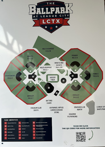 The Ballpark at League City is a well-maintained and clean facility, offering a great experience for families. It features a covered playground for younger children, providing a shaded area for play. Visitors appreciate the comfortable seating, whether enjoying the game outdoors or from the air-conditioned indoor restaurant and bar. The park also boasts free and ample parking, making access convenient for all.