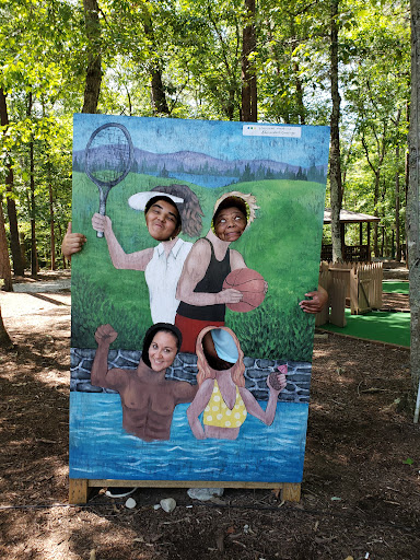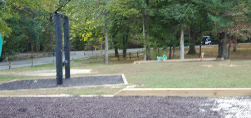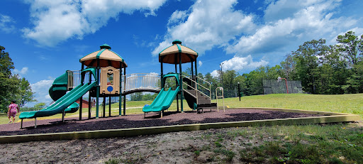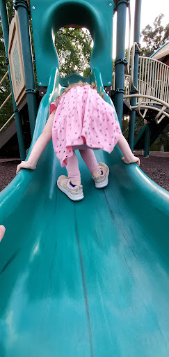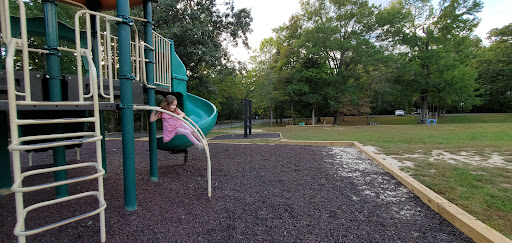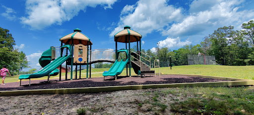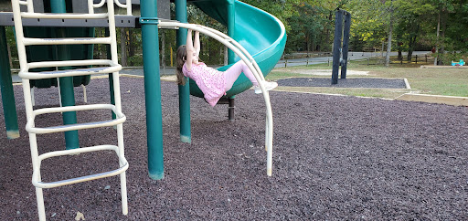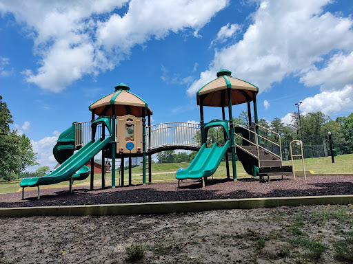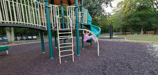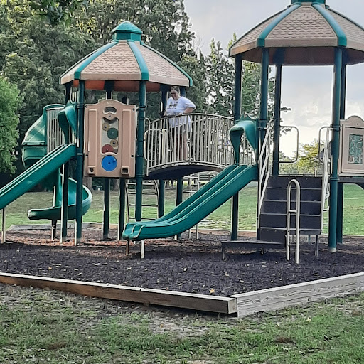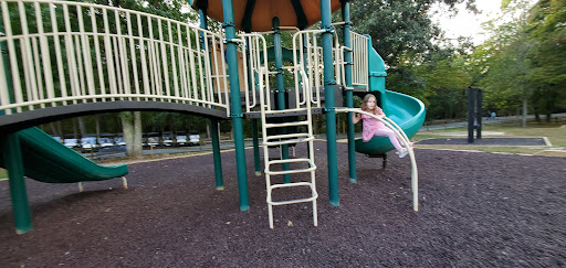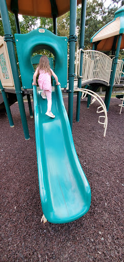 This playground is a well-kept spot that provides simple fun for younger children, featuring multiple slides and swings, including a swing specifically for small kids. Adults can comfortably relax on benches shaded by trees. It’s conveniently located near a tennis court, basketball court, and mini-golf, offering additional recreational options for families.
